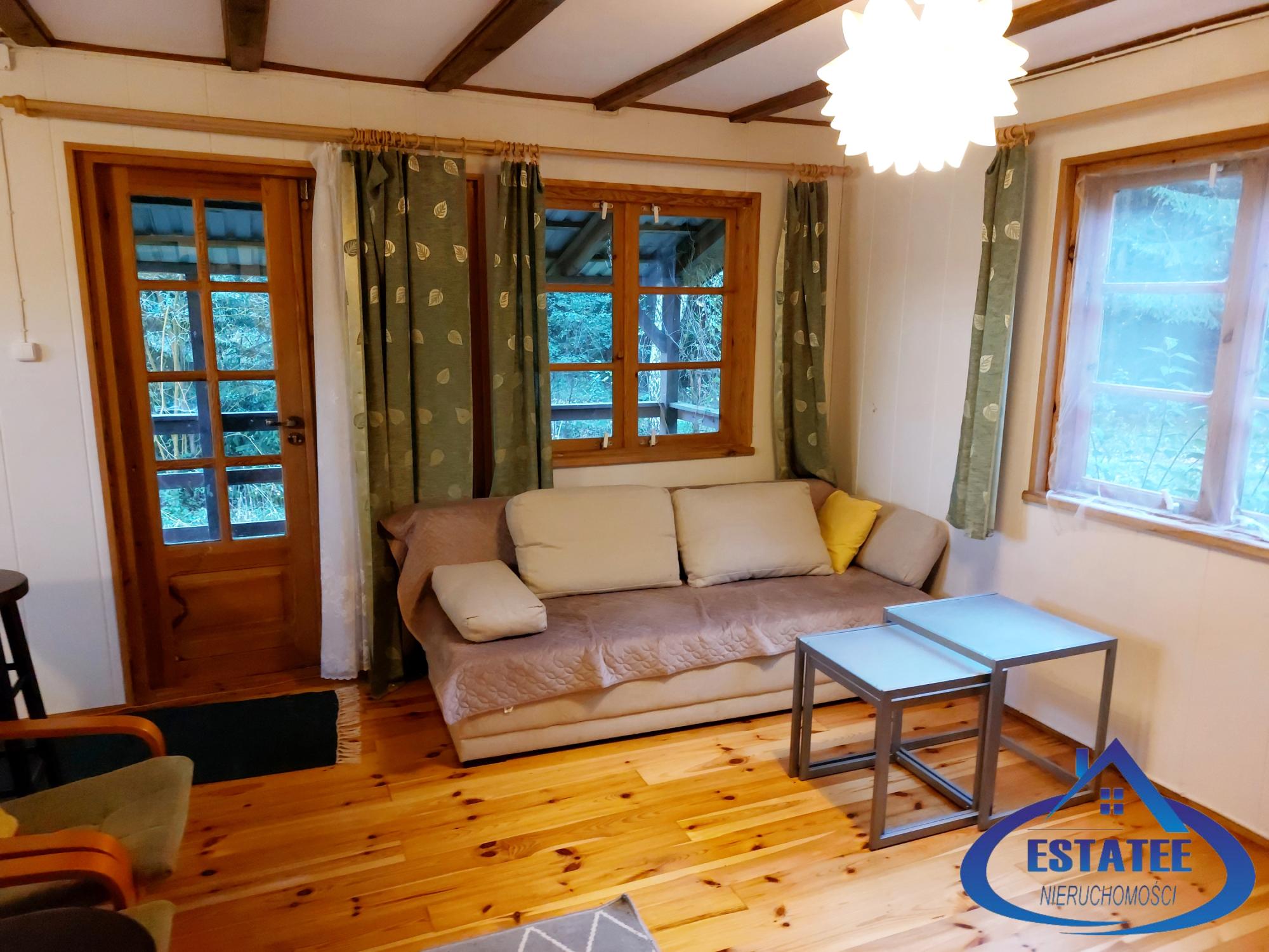 Na działce znajduje się w pełni urządzony dom letniskowy o powierzchni zabudowy 38 m², idealny do zamieszkania lub wynajmu.