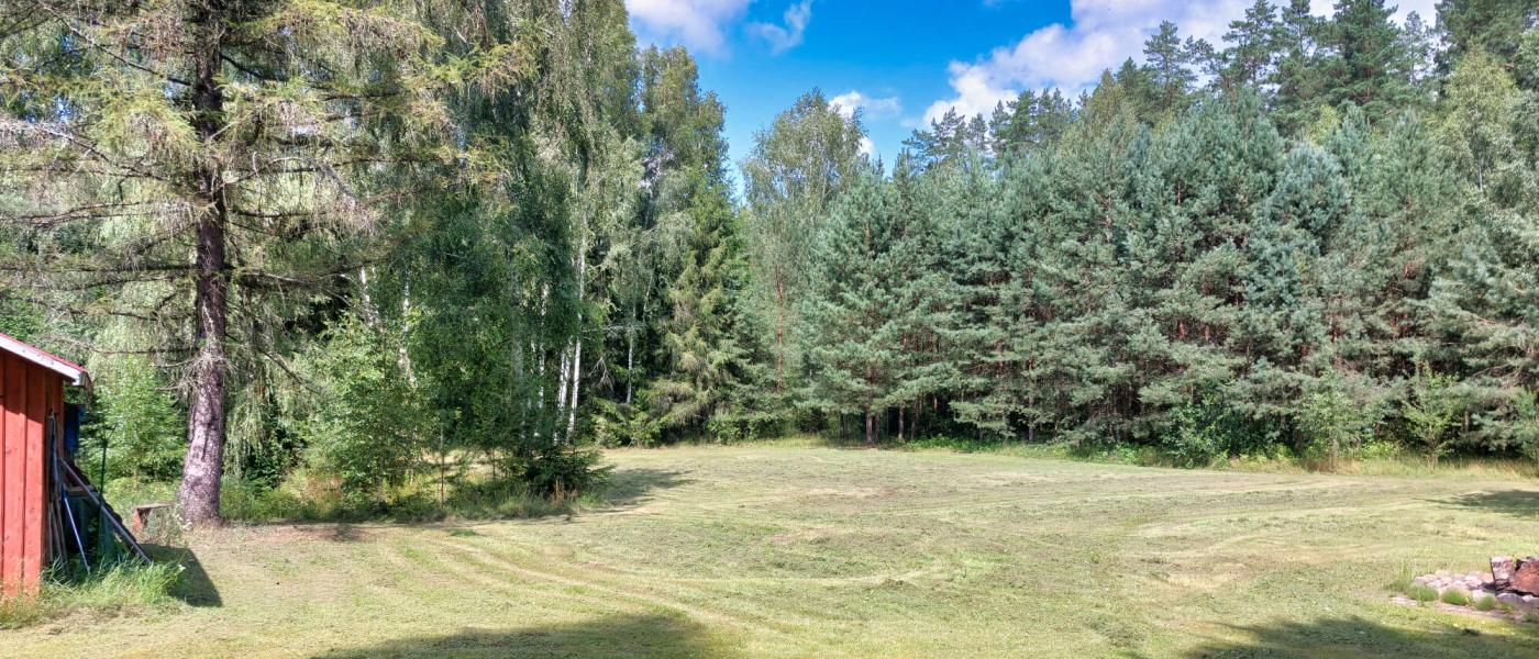 - Część działki porośnięta 20-letnim lasem.